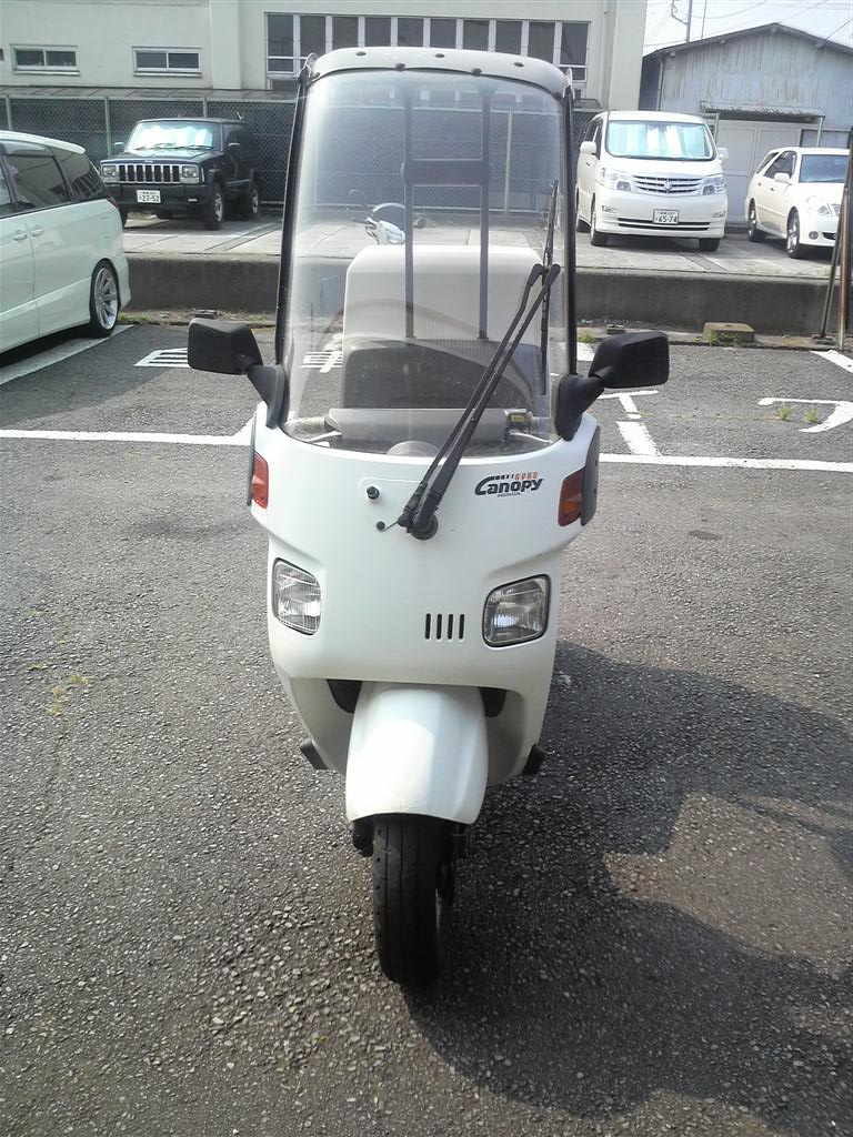 実際、canopyは、普通の原付に比べるとかなり大きいです。ジャイロXなどは小さいけど、250ccクラスと同じ位かな?(オーバーですかね?)ですから、感覚の悪いかみさんにはとても乗り回せる代物ではないので、新たに別の原付を購入しました。